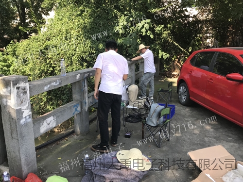 6月28日,大禹電子工程師們來到福州金山橘園州工業(yè)區(qū)里面的內(nèi)河,進行單波束聲學多普勒流速剖面儀的測量試驗。