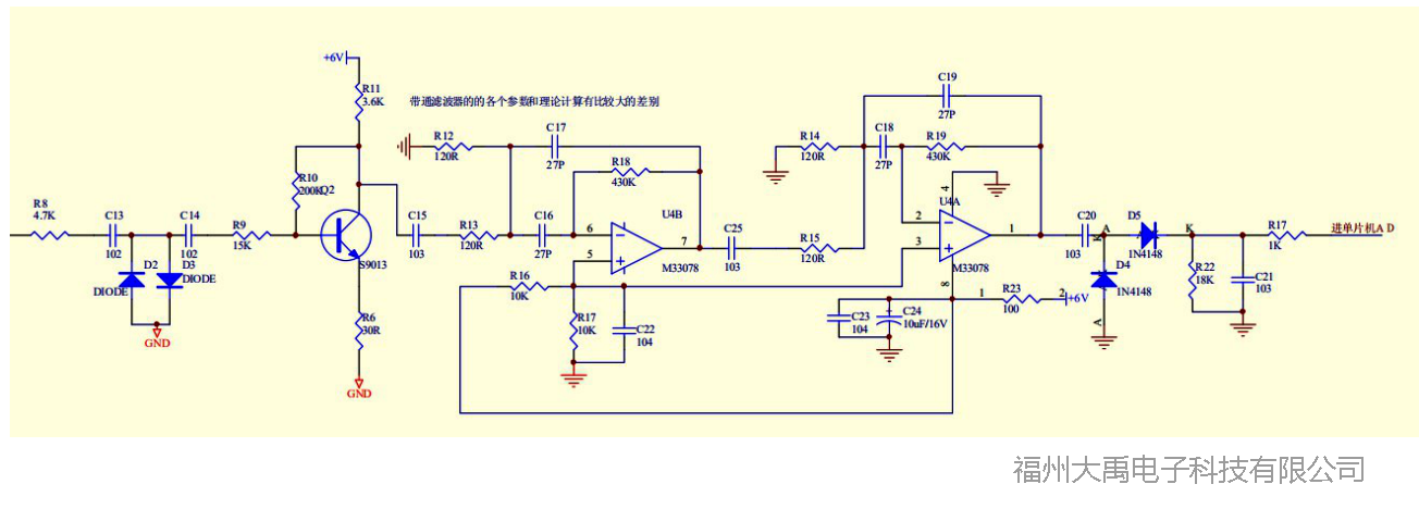超聲波測距的接收放大地電路,就是一個(gè)小信號(hào)放大電路。接收到的信號(hào)比較小,而且如果測量范圍大的產(chǎn)品,信號(hào)的動(dòng)態(tài)范圍很大。從 uV~幾百 mV 的信號(hào)。一般要求放大倍數(shù)比較大,如果距離遠(yuǎn),放大電路最好做 AGC 或者 TGC 處理。一般有三種處理方式。