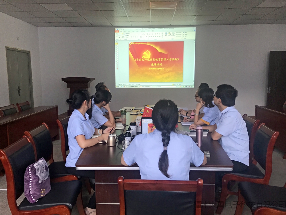 根據(jù)中共福州市晉安區(qū)鼓山鎮(zhèn)福興經(jīng)濟開發(fā)區(qū)黨工委的統(tǒng)一部署,中共福州大禹電子科技有限公司黨支部于2019年7月18日下午,在公司黨支部會議室召集黨員和入黨積極分子共同學習《中國共產(chǎn)黨黨員教育管理條例》。