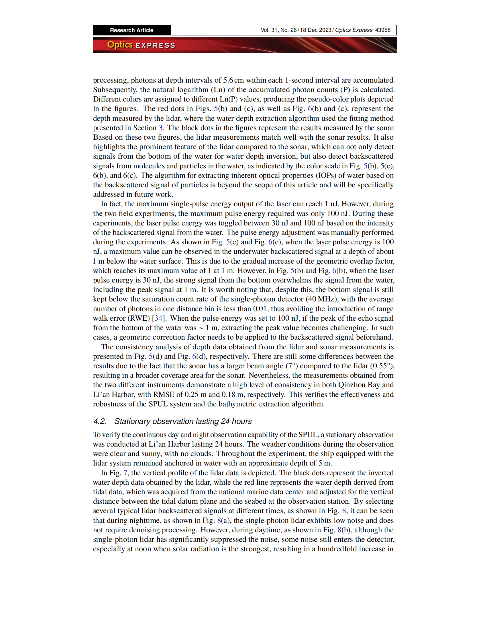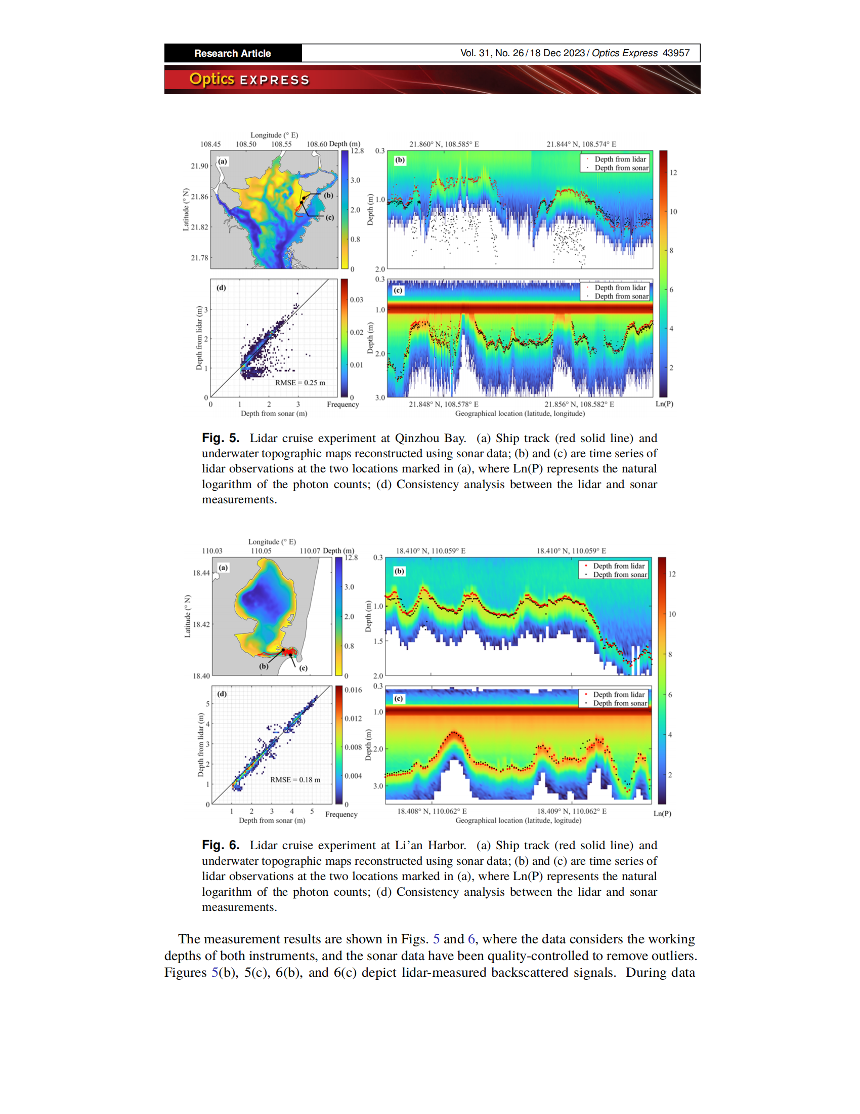 廈門大學(xué)上官明佳教授發(fā)表于美國國家光學(xué)雜志的文章,里面用了福州大禹電子的聲吶測試數(shù)據(jù)和他的水下測距激光雷達(dá)進(jìn)行互相驗(yàn)證。